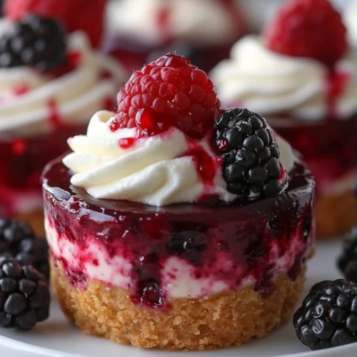 Introducing the irresistible Berry Swirl Cheesecake Bites: A Quick No-Bake Treat, a delightful dessert that captures the essence of creamy cheesecake combined with the vibrant flavors of fresh berries. These bite-sized treats are perfect for any occasion, whether it’s a weeknight indulgence, a family gathering, or a special celebration. Each bite is a burst of rich, velvety cheesecake flavor swirled with luscious berries, creating a beautiful and tasty experience. The Berry Swirl Cheesecake Bites are not only delicious but also incredibly easy to prepare, making them an excellent choice for both novice and experienced bakers alike. With no baking required, this dessert allows you to enjoy a sweet treat without the hassle of a long preparation time. Perfect for kids and adults, these cheesecake bites will impress your guests and satisfy your sweet tooth.