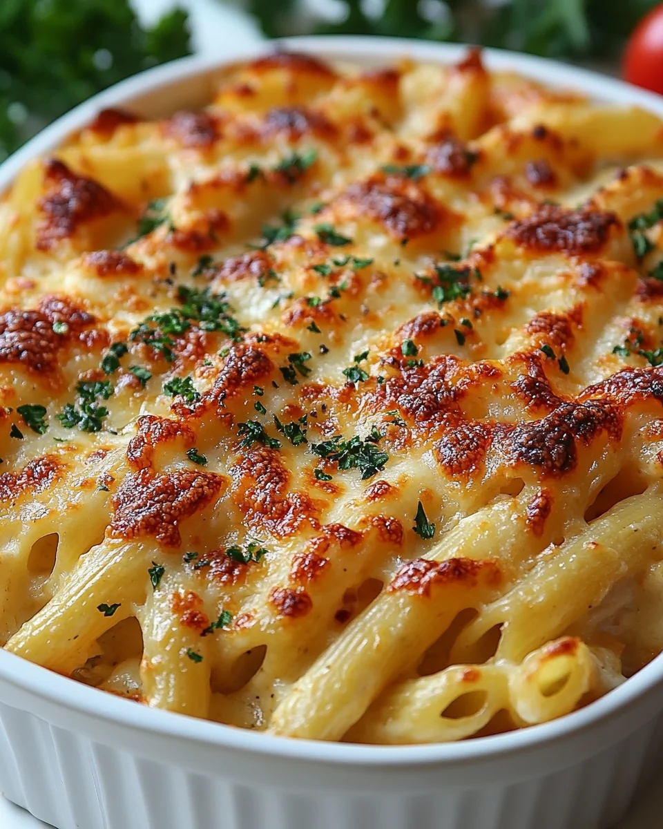 Garlic Parmesan Chicken Pasta: A Cozy Oven-Baked Delight is a dish that brings warmth and comfort to any table. With its rich fusion of flavors, this pasta recipe features tender chicken, creamy garlic sauce, and a generous sprinkle of Parmesan, making it an irresistible choice for weeknight dinners or family gatherings. The creamy texture combined with the aromatic garlic and salty Parmesan creates a delightful experience that appeals to both kids and adults alike. This dish is perfect for those chilly evenings when you crave something hearty and fulfilling. Its easy preparation and oven-baked method mean you can spend less time in the kitchen and more time enjoying the company of loved ones. Whether you’re hosting a casual dinner or simply seeking a cozy meal at home, Garlic Parmesan Chicken Pasta: A Cozy Oven-Baked Delight is sure to satisfy your cravings.
