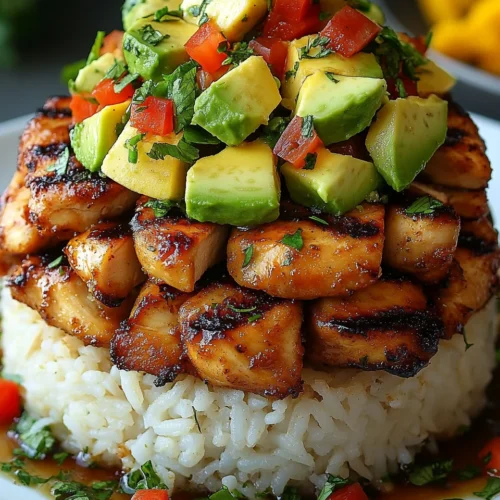 Finally, slice the chicken and lay it on top of the rice and avocado. Garnish the entire dish with freshly chopped cilantro for a burst of color and flavor. Serve immediately while hot, enjoying the delightful combination of sweet, tangy, and savory in every bite of the Honey Lime Chicken Avocado Rice One-Pot Wonder.