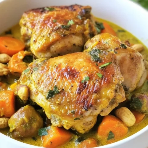 Savory Curried Chicken Thighs with Fresh Carrot Peanut Sauce is a dish that beautifully melds bold spices with creamy textures, making it an unforgettable meal for any occasion. The aromatic spices of the curry coat tender chicken thighs, resulting in a mouthwatering flavor that dances on the palate. This dish is perfect for weeknight dinners, family gatherings, or even special occasions, appealing to both adults and children alike. The standout quality of this recipe lies in its ability to combine rich flavors while remaining simple and approachable for home cooks. Whether you’re a novice in the kitchen or a seasoned chef, this recipe invites you to explore the delightful union of savory and sweet.