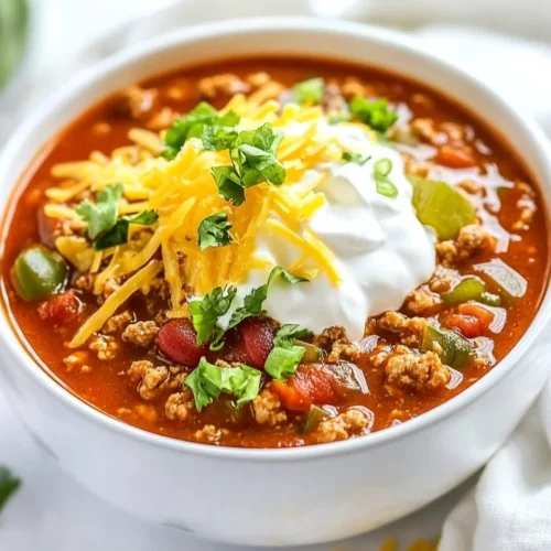 Savory Slow Cooker Turkey Chili For A Cozy Night In is the perfect dish for those chilly evenings when you want something warm and comforting. This hearty chili features ground turkey, a lean protein option, simmered with a blend of spices, beans, and vegetables, creating a delicious and satisfying meal. The flavors meld beautifully as it cooks slowly, allowing the spices to infuse every bite. It’s an ideal choice for a weeknight dinner or a family gathering, catering to both adults and children alike. Plus, the slow cooker does all the hard work, making this recipe a convenient option for busy lifestyles. With its rich textures and tantalizing flavors, this chili offers a cozy experience that will keep you coming back for more.