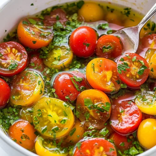 The Simple Marinated Cherry Tomatoes Recipe is a vibrant and refreshing dish that captures the essence of summer in every bite. These marinated cherry tomatoes are bursting with flavor and are incredibly easy to prepare, making them perfect for family-friendly meals or a quick addition to your weeknight dinners. The combination of juicy tomatoes and a zesty marinade creates a delightful explosion of taste that can elevate any meal. Whether you serve them as a side dish, toss them into salads, or enjoy them on their own, this recipe shines as a versatile and crowd-pleasing option. Their standout qualities lie in their simplicity, vibrant colors, and the ability to enhance the flavors of various dishes.