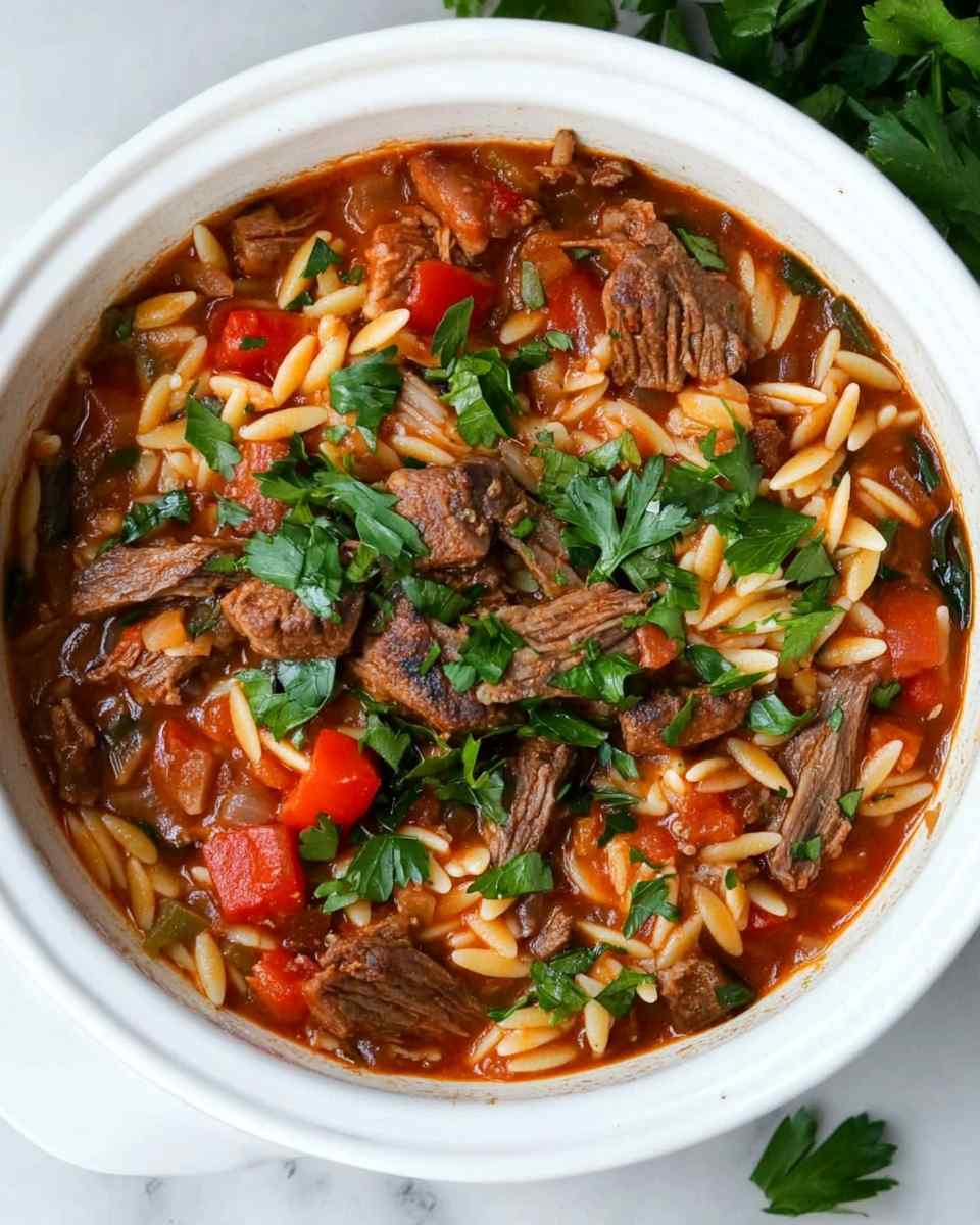 Slow Cooker Lamb Orzo Stew is an exquisite dish that brings warmth and comfort to your dining table. This hearty stew combines tender lamb, vibrant vegetables, and delicate orzo pasta, creating a symphony of flavors that is both satisfying and nourishing. The slow-cooking process infuses the lamb with rich spices and herbs, ensuring that every bite is full of depth. As the ingredients meld together over hours, the result is a stew that is not only delicious but also visually appealing, with a beautiful medley of colors. Perfect for family gatherings or a cozy night in, this recipe is sure to become a favorite in your culinary repertoire. Imagine coming home to a house filled with the enticing aroma of this stew, ready to be enjoyed after a long day. With minimal prep time and effortless cooking, you can spend more time relaxing and less time in the kitchen. Let’s explore how to create this delectable dish.